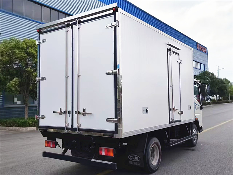 | 厢体配置:采用我公司液压吸附一体成型生产线制造,保温性能达到国家 A 级标准。厢体内外面料采用新款纳米玻璃钢(不吸光、隔热性好、硬度强、抗氧化),厢体厚度为 8cm。内衬骨架为防锈处理武钢轻钢型材,保温材料为无空隙填充聚氨酯发泡。厢体底部为铝合金花纹板或可选平面纳米玻璃钢,厢体采用镀锌不锈钢包角,加厚型铝合金包边,后门框为不锈钢,加厚型不锈钢后门合页及锁件,厢体内部采用 LED 照明灯及厢体示宽灯。 选装冷机:可根据客户的用车需求选择不同机组,可选 - 5℃、-10℃、-15℃、-18 至 - 20℃冷藏机组。冷藏机组品牌有信凯利、冰利、韩亚、开冷、汉雪、华泰、凯雪、易德、凯利等,进口冷藏机组品牌有开利、冷王。冷藏机组分为独立机组和分体机组,可根据用车需求推荐合适的冷藏机组。该车型可选装 “制冷 + 加热” 双温机组(控制温度范围为 + 20℃至 - 18℃),适用于东北地区及内蒙、新疆、西藏等严寒地区。 选装配置:导轨肉钩、T 型通风槽、右侧开侧门、温度实时监控带打印装置。运输海鲜时厢体内部面料建议选用不锈钢材质,可选装 12V-24V 外接电源(车辆停止时,厢体可通过外接电源制冷)。