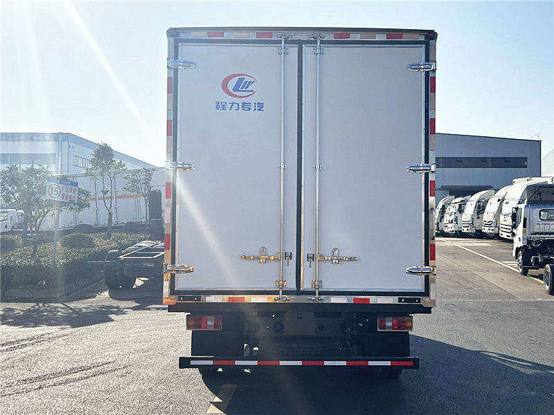 | 厢体配置:采用我公司液压吸附一体成型生产线制造,保温性能达到国家 A 级标准。厢体内外面料采用新款纳米玻璃钢(不吸光、隔热性好、硬度强、抗氧化),厢体厚度为 8cm。内衬骨架为防锈处理武钢轻钢型材,保温材料为无空隙填充聚氨酯发泡。厢体底部为铝合金花纹板或可选平面纳米玻璃钢,厢体采用镀锌不锈钢包角,加厚型铝合金包边,后门框为不锈钢,加厚型不锈钢后门合页及锁件,厢体内部采用 LED 照明灯及厢体示宽灯。 选装冷机:可根据客户的用车需求选择不同机组,可选 - 5℃、-10℃、-15℃、-18 至 - 20℃冷藏机组。冷藏机组品牌有信凯利、冰利、韩亚、开冷、汉雪、华泰、凯雪、易德、凯利等,进口冷藏机组品牌有开利、冷王。冷藏机组分为独立机组和分体机组,可根据用车需求推荐合适的冷藏机组。该车型可选装 “制冷 + 加热” 双温机组(控制温度范围为 + 20℃至 - 18℃),适用于东北地区及内蒙、新疆、西藏等严寒地区。 选装配置:导轨肉钩、T 型通风槽、右侧开侧门、温度实时监控带打印装置。运输海鲜时厢体内部面料建议选用不锈钢材质,可选装 12V-24V 外接电源(车辆停止时,厢体可通过外接电源制冷)。