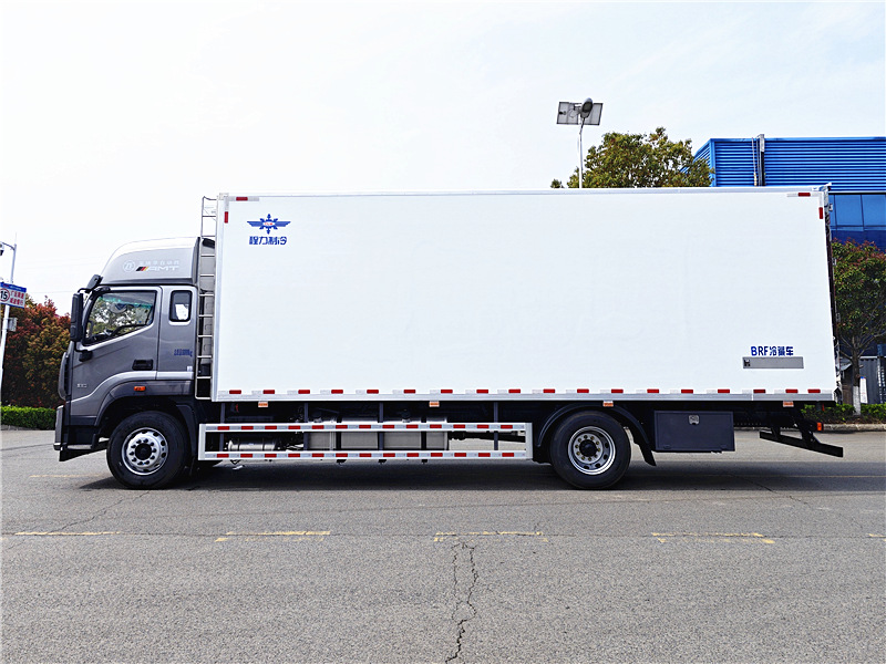 | 厢体配置:采用我公司液压吸附一体成型生产线制造,保温性能达到国家 A 级标准。厢体内外面料采用新型纳米玻璃钢(不吸光、隔热性好、硬度强、抗氧化);厢体厚度为 8cm;内衬骨架为防锈处理武钢原厂轻钢型材;保温材料为无空隙填充聚氨酯发泡;厢体底部为铝合金花纹板或选平面纳米玻璃钢;厢体采用镀锌不锈钢包角,加厚型铝合金包边;后门框为不锈钢,加厚型不锈钢后门合页及锁件;厢体内部采用 LED 照明灯及厢体示宽灯。 选装冷机:可根据客户的用车需求选择不同的机组,可选 - 5℃、-10℃、-15℃、-18℃至 - 20℃冷藏机组。冷藏机组品牌有:信凯利、冰利、韩亚、开冷、汉雪、华泰、凯雪、易德、凯利等。进口冷藏机组品牌有:开利、冷王。冷藏机组分为独立机组和分体机组,可根据您的用车需求推荐合适的冷藏机组。该车型可选装 “制冷 + 加热” 双温机组(控制温度范围为 + 20℃至 - 18℃),可用于东北地区及内蒙、新疆、西藏等严寒地区。 选装配置:导轨肉钩、T 型通风槽、右侧开侧门、温度实时监控带打印装置。运输海鲜时,厢体内部面料推荐选装不锈钢制造。可选装 12V-24V 外接电源(车辆停止时,厢体可通过外接电源制冷)。