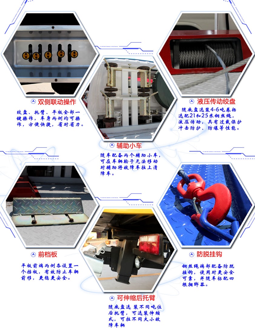 | 补充说明:特点1:多路阀、平衡阀采用意大利原装进口件(湖北唯一进口液压件的清障车)